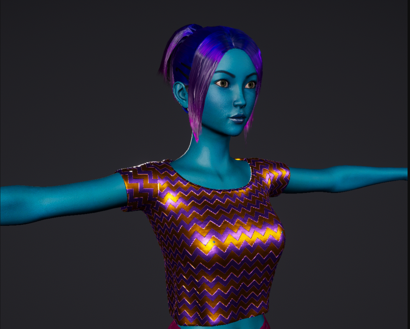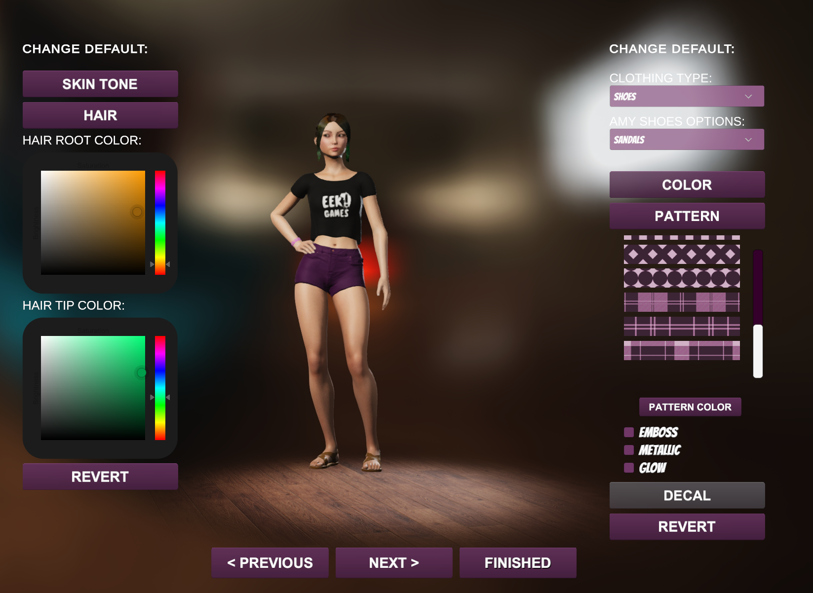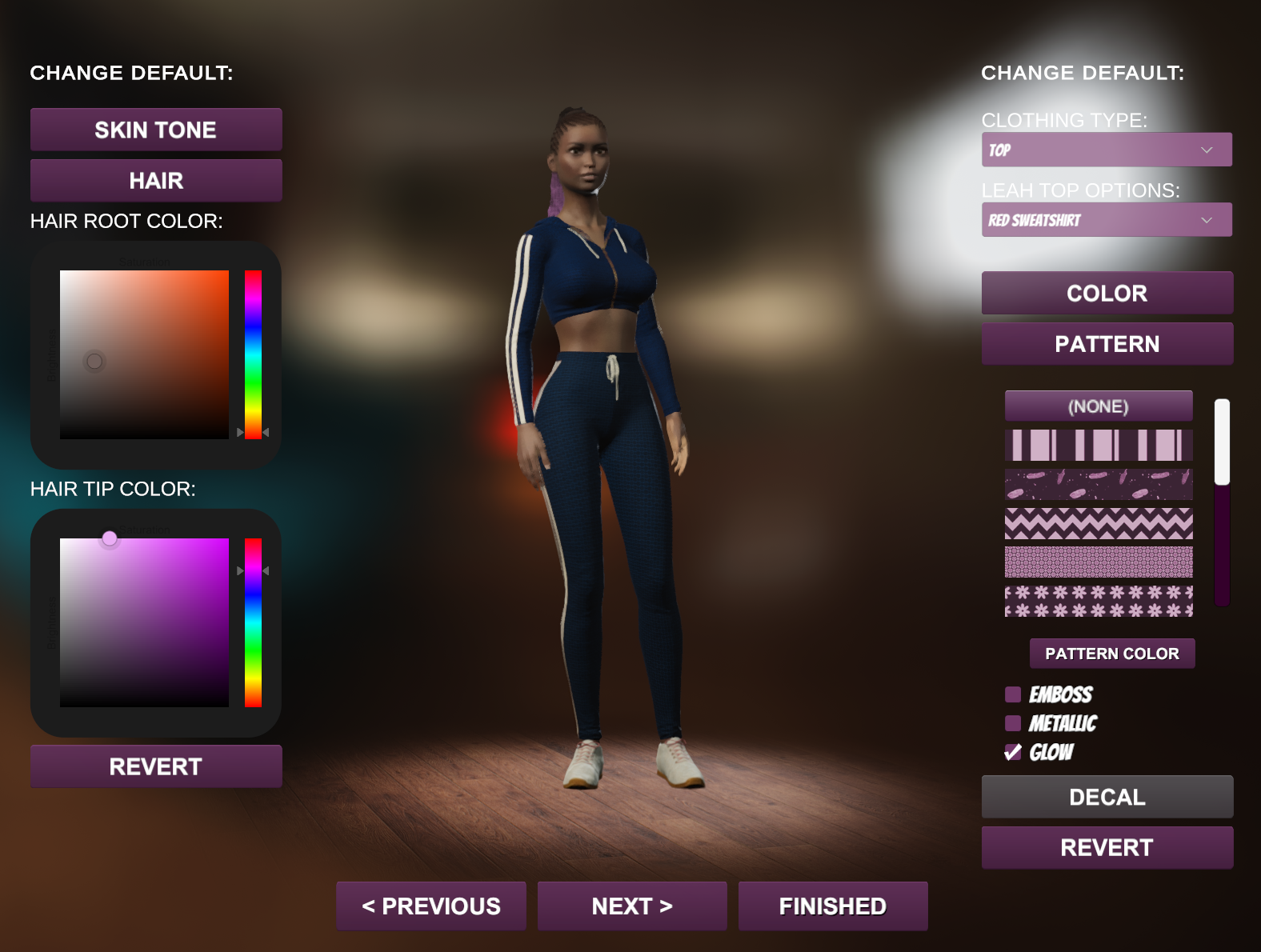 The most exciting new feature that you'll see is character customization! You'll be able to change colors, patterns, decals (on some characters), skin tone, hair root and tip color, and even add effects like emboss and metallic to some clothing pieces. Check out more example outfits: